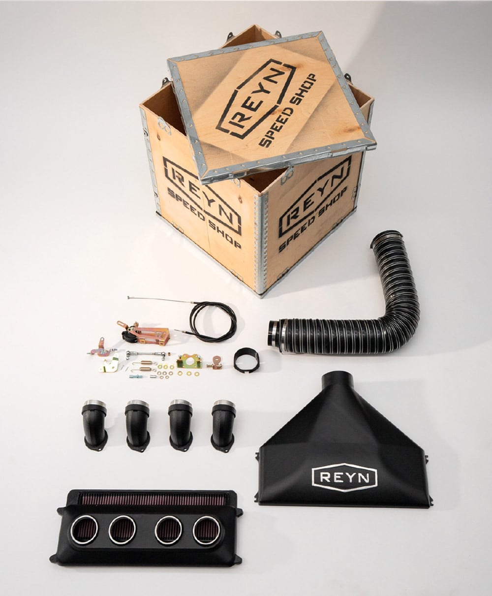 The Reyn Speed Shop WAB4 can be installed on any BMW m10 motor with dual weber carburetors. Specifically engineered as a plenum chamber increasing VE (volumetric efficiency) for street use to improve equal flow of air to each cylinder. Our snorkel intake nozzle improves quality of air flow to the plenum bringing in cool air. Improved throttle response is immediate!